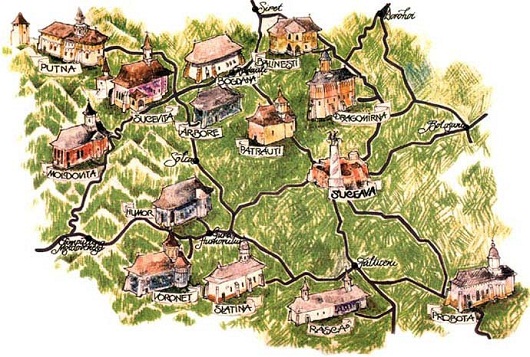 IV. Probota Monastery (where is buried Petru Rares), White Church from Baia (founded by Stephen the Great), Memorial House of Nicolae Labis from Malini, Slatina Monastery (founded by the voivode Alexandru Lapusneanu) Risca Monastery (founded by Petru Rares) - 4 churches and monasteries.